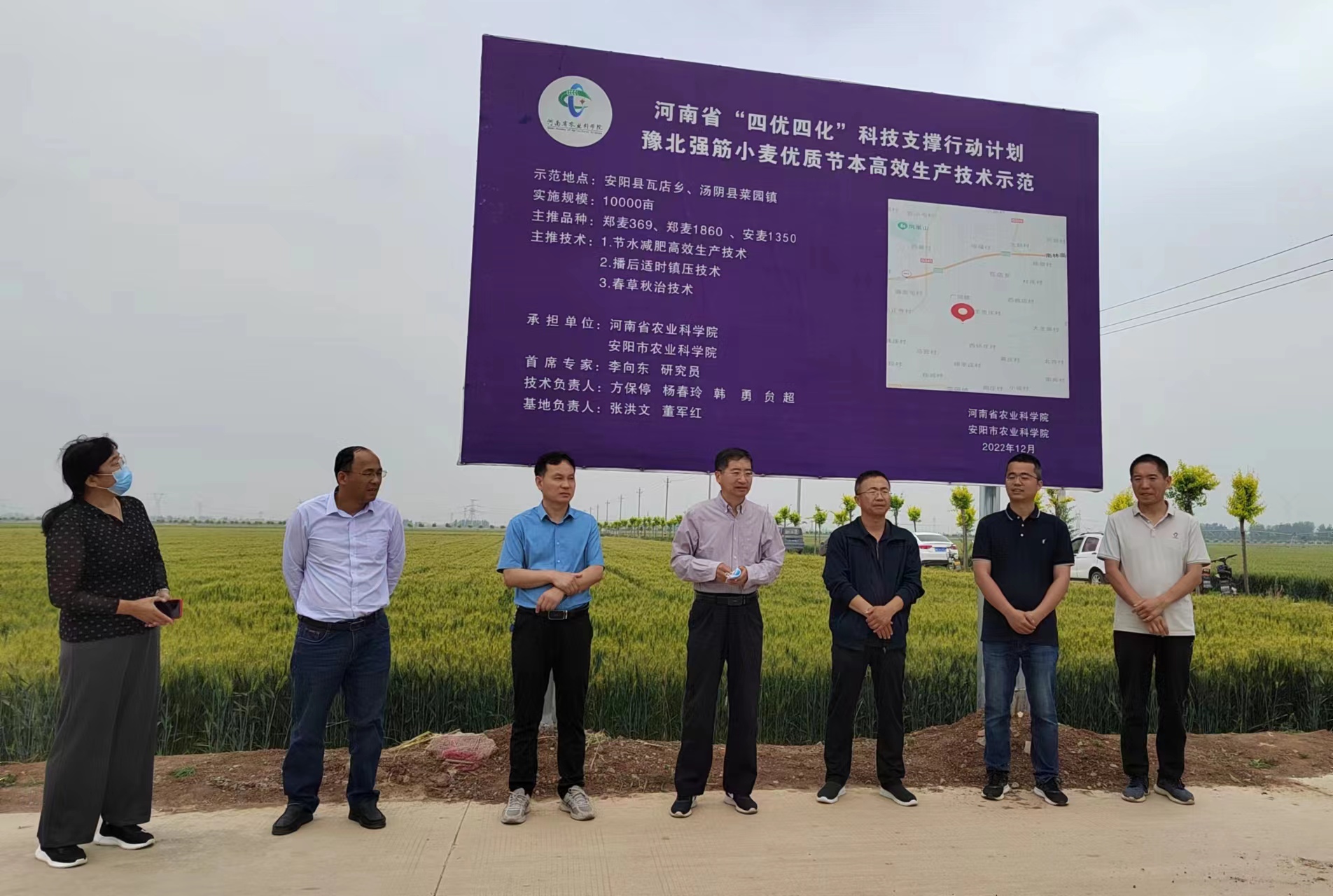 当前小麦处于灌浆的关键阶段,5月20日,为扩大河南省“四优四化”科技支撑行动计划优质小麦专项的影响力,积极推广强筋小麦优质节本高效生产技术,安阳市农科院在安阳广润坡高标准农田示范区召开河南省“四优四化”科技支撑行动计划优质小麦专项“豫北强筋小麦优质节本高效生产技术示范”观摩会。河南省“四优四化”科技支撑行动计划优质小麦专项首席专家李向东,河南省农业科学院研究员方保停、博士靳海洋,安阳市农业科学院和安阳市种子管理站有关负责人以及西北农林科技大学专家,示范区技术骨干、种植大户(合作社)代表等50余人参加。